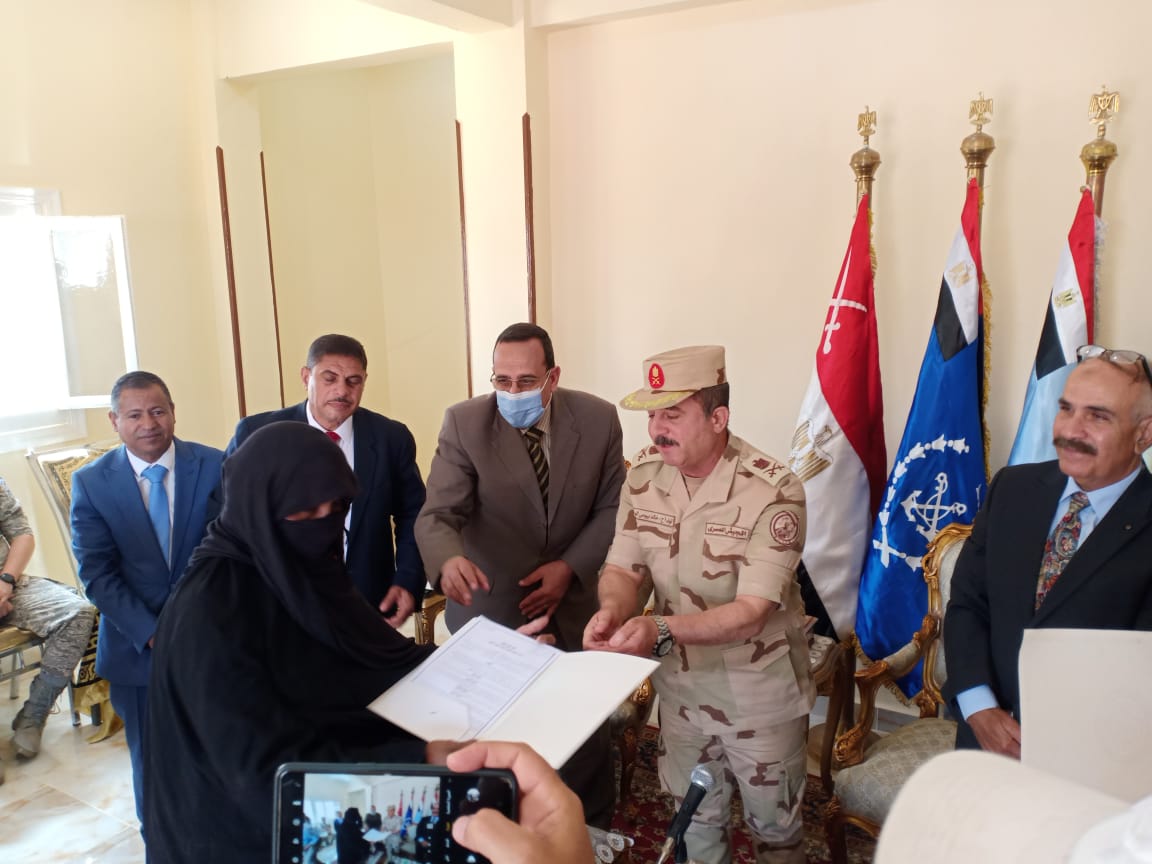 ووزع قائد قوات شرق القناة لمكافحة الإرهاب، ومحافظ شمال سيناء، بتوزيع عقود تملك المنازل على المستحقين من الأسر الأكثر احتياجا.