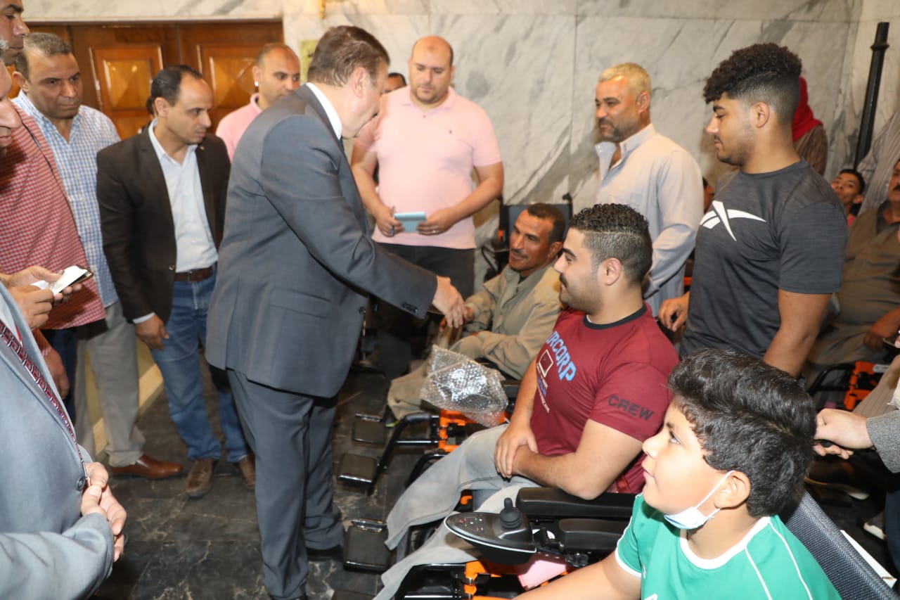 محافظ المنوفية يسلم كراسي متحركة ومساعدات لذوي الهمم تزامنًا مع عيد الفطر| صور