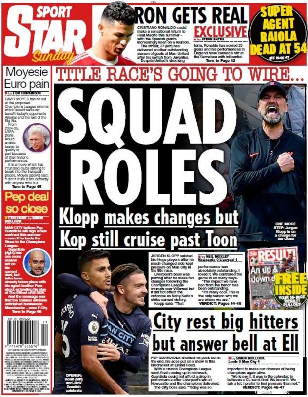عنونت إكسبريس في غلافها بـ كلوب وأهداف فريقه، حيث قالت إن المدرب الألماني أعاد التدورير في خطته، وساهم بشكل كبير في إراحة لاعبيه مع حصد 3 نقاط أمام نيوكاسل.