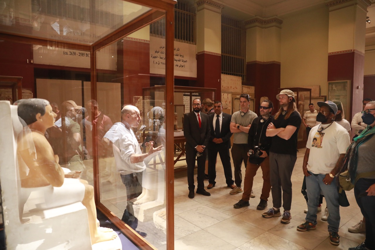 وكانت في استقبالهم صباح عبد الرازق مدير عام المتحف المصري بالتحرير، واصطحبتهم في زيارة داخل قاعات المتحف المختلفة.