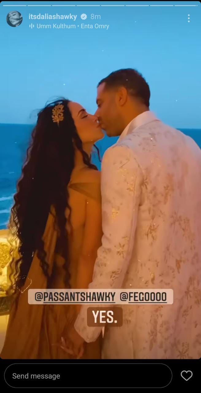 نشرت داليا شوقي شقيقة بسنت شوقي على حسابها الشخصي بـ انستجرام عبر خاصية الاستوري، محمد فراج وهو يقبل بسنت شوقي.
