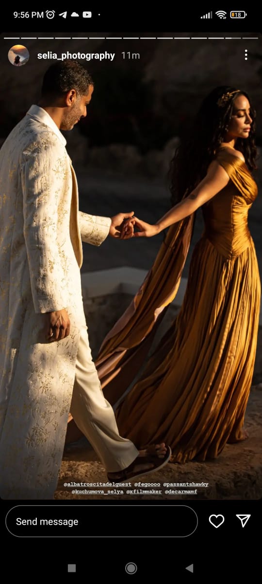 جلسة تصوير محمد فراج وبسنت شوقي من حفل ما قبل الزفاف