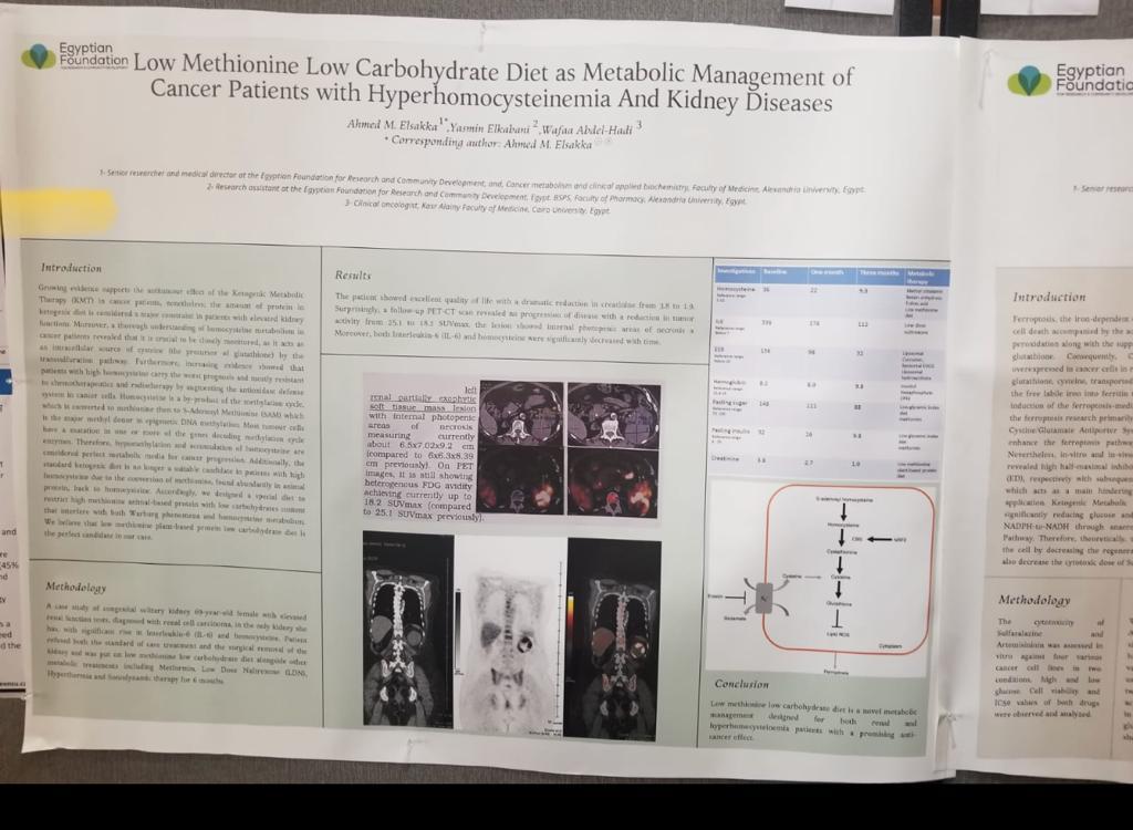 بينما الثالث كان عن مشروع cell culture الخاصة بالمؤسسة وهو يدرس تأثير تقليل السكريات والنشويات على خفض جرعات العلاجات اللازمة للأورام.