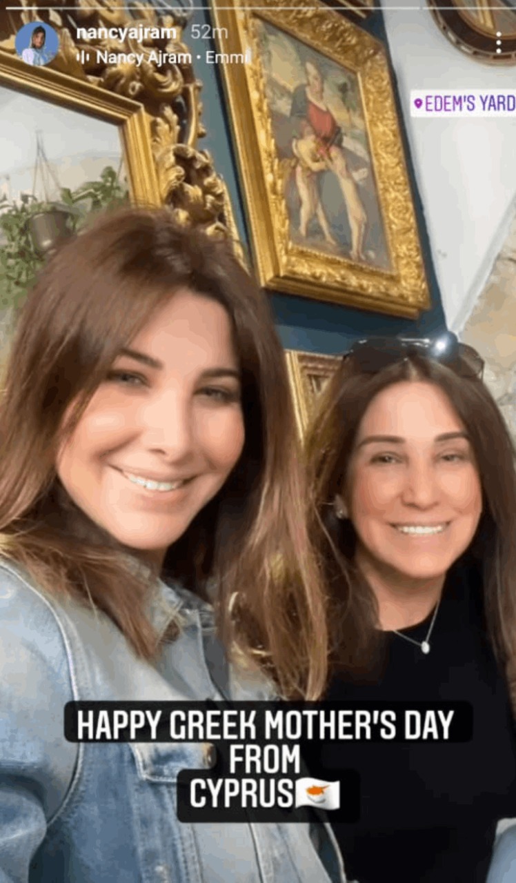 ونشرت نانسي صورًا تجمعها بوالدتها من قبرص في تركيا، بالتزامن مع عيد الأم في اليونان، عبر خاصية ستوري انستجرام، بالأمس، وعلقت قائلةً: عيد أم يوناني سعيد من قبرص.