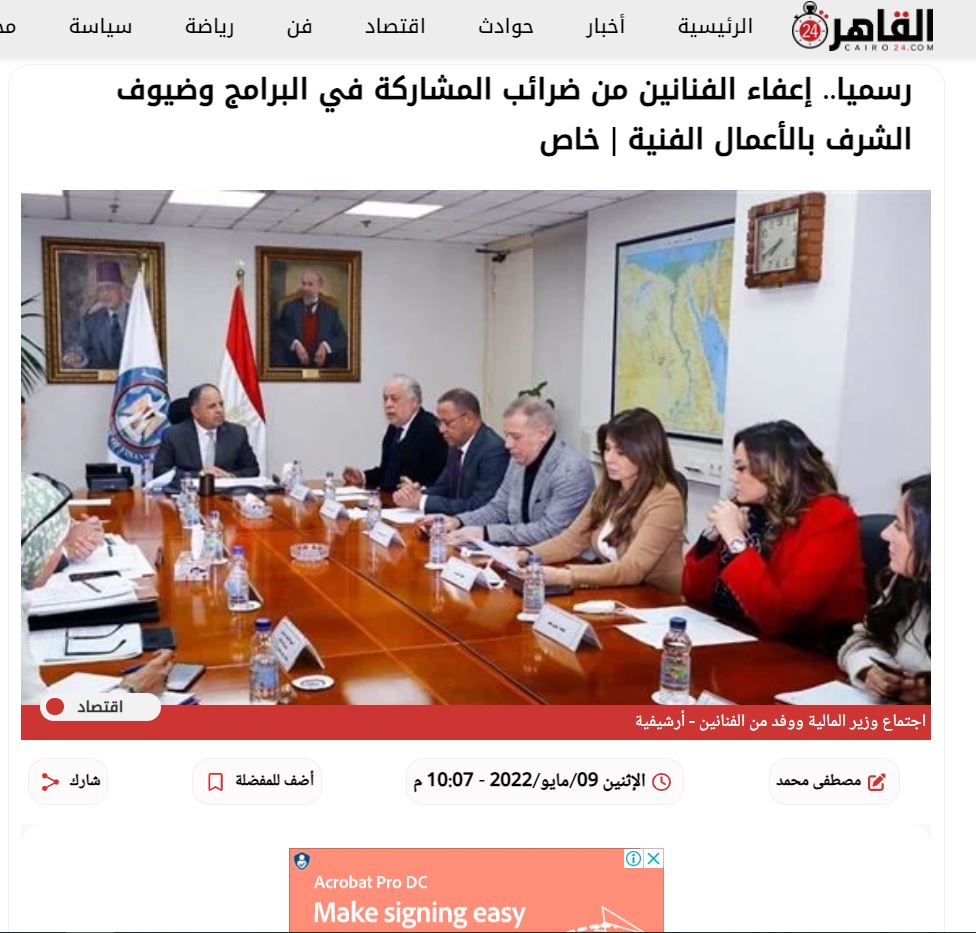 تأكيدا لـ القاهرة 24.. الضرائب تعلن إعفاء الفنانين من مستحقات الظهور التليفزيوني والمشاركة الشرفية