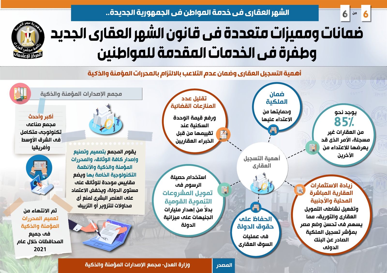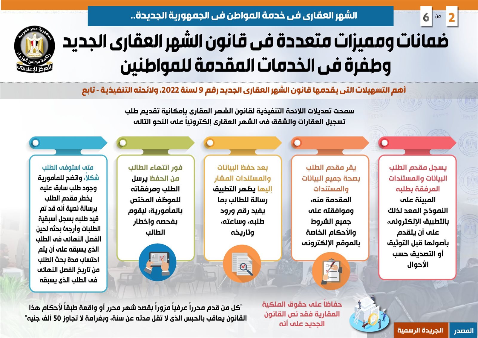الحكومة: ضمانات ومميزات متعددة في قانون الشهر العقاري الجديد │ إنفوجراف