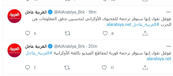 تعددت مجهودات شركة جوجل بشأن الحرب بين روسيا وأوكرانيا، حيث قالت الشركة إنها ستوفر ترجمة للمحتوى الأوكراني في الفترة المقبلة، وذلك لتحسين تدفق المعلومات عن الحرب الروسية الأوكرانية، وفقًا لما ذكرته قناة العربية في تغريدة عبر تويتر.