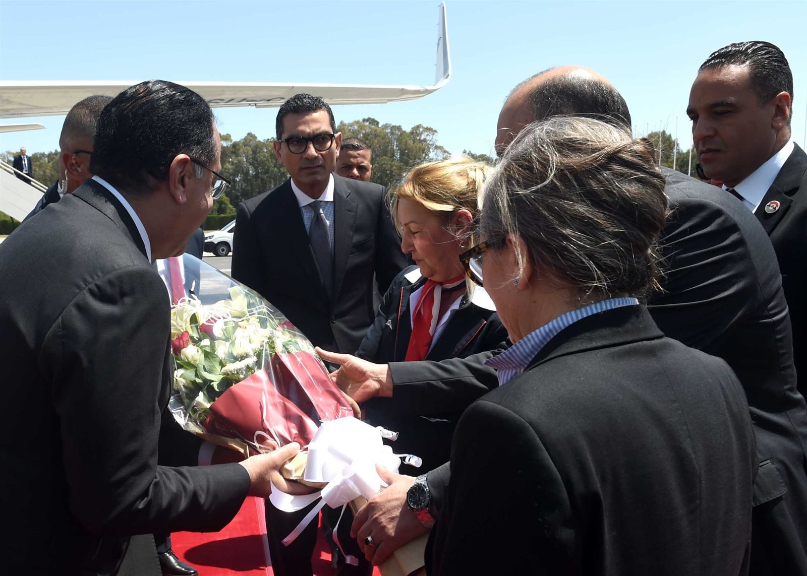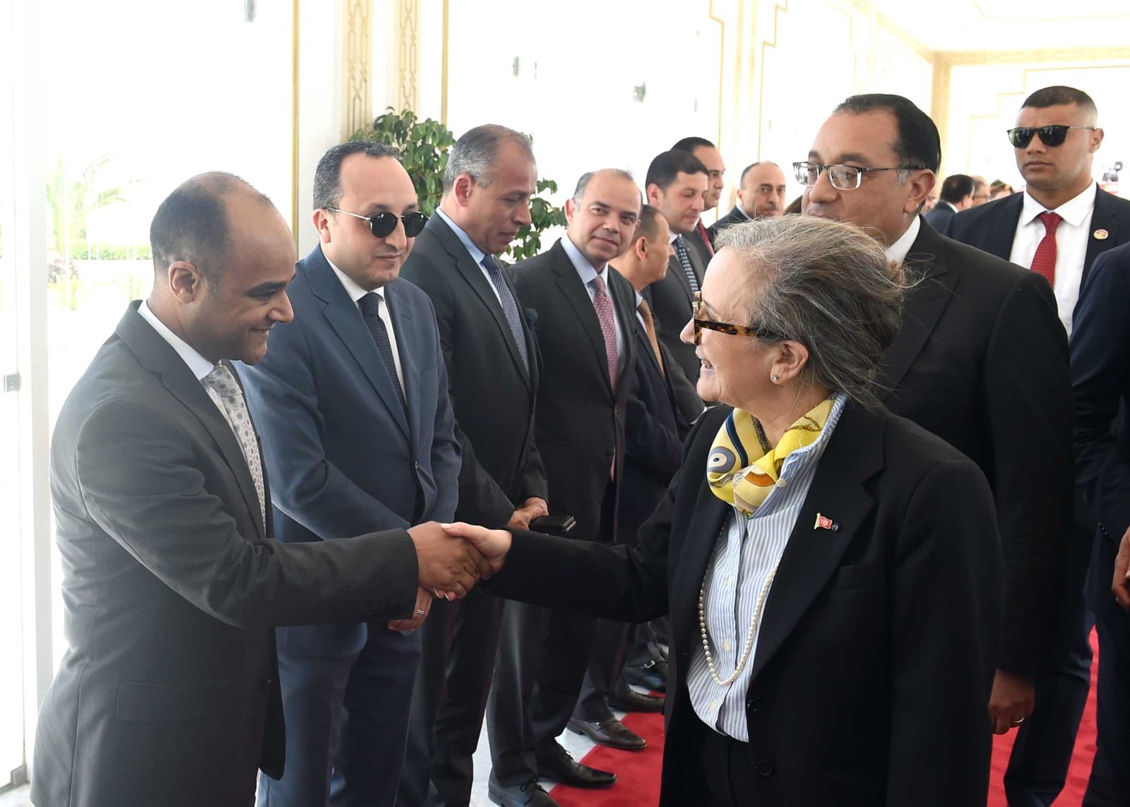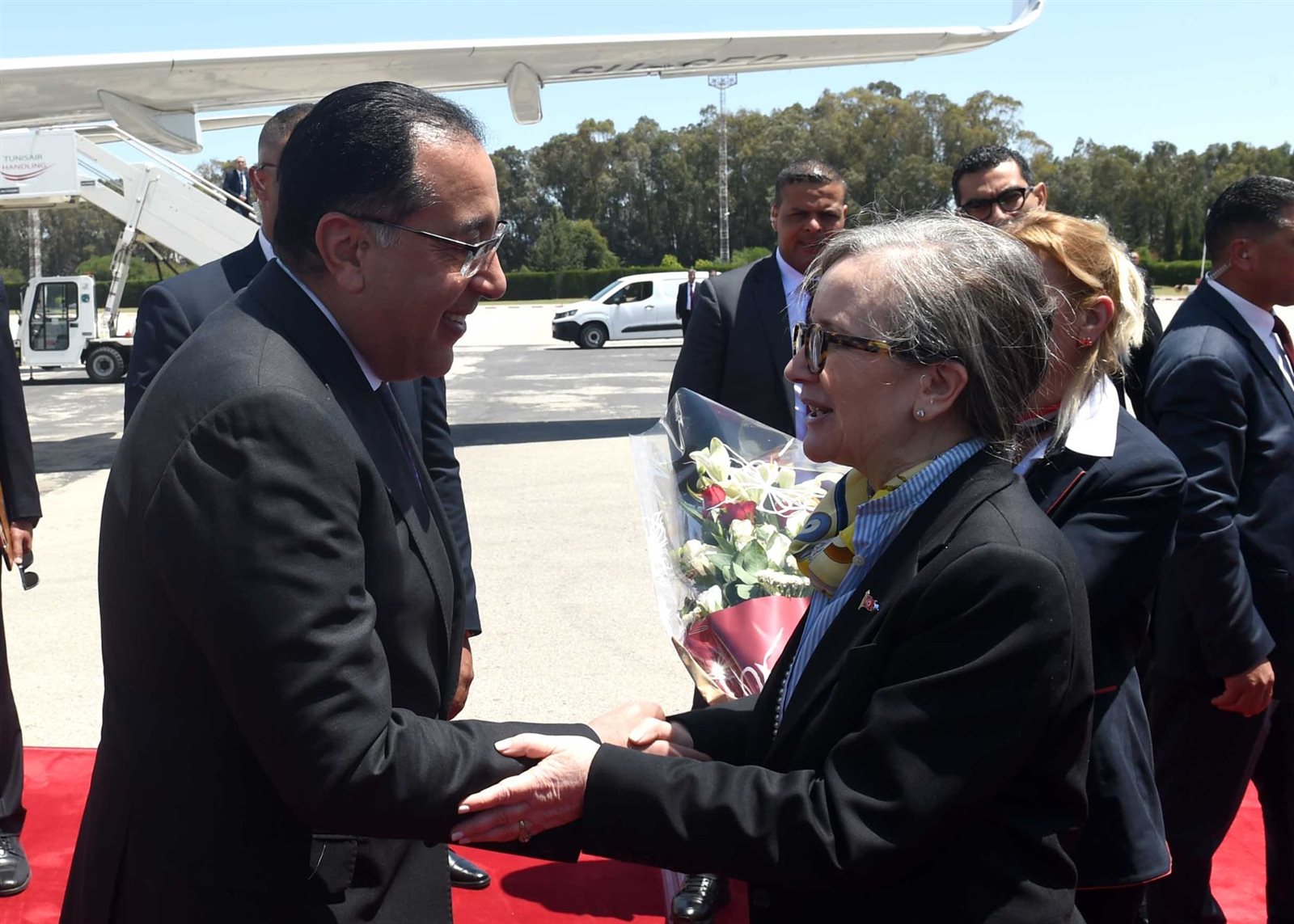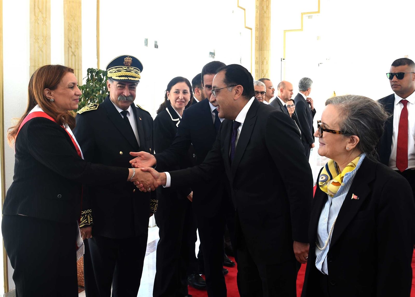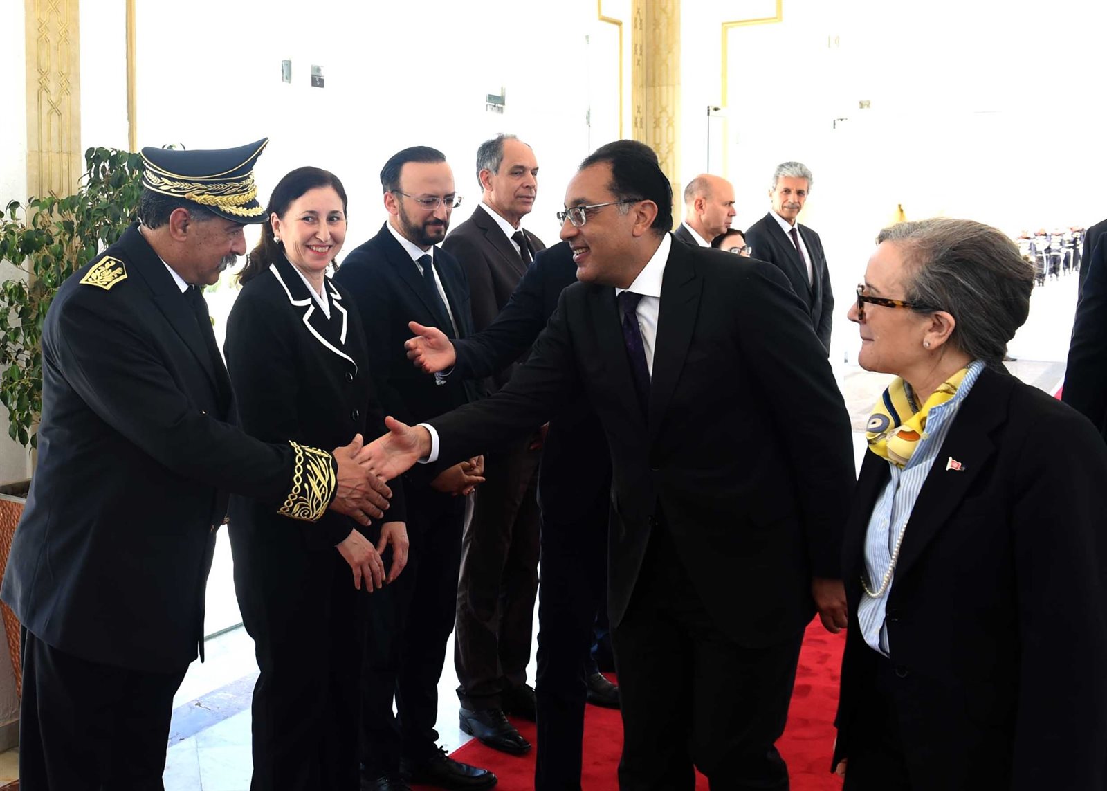 وكان في استقبال رئيس الوزراء والوفد المرافق له بالمطار، نجلاء بودن، رئيسة الحكومة التونسية، والسفير إيهاب فهمي، سفير مصر لدى تونس، حيث جرت مراسم الاستقبال الرسمي، واستعراض حرس الشرف