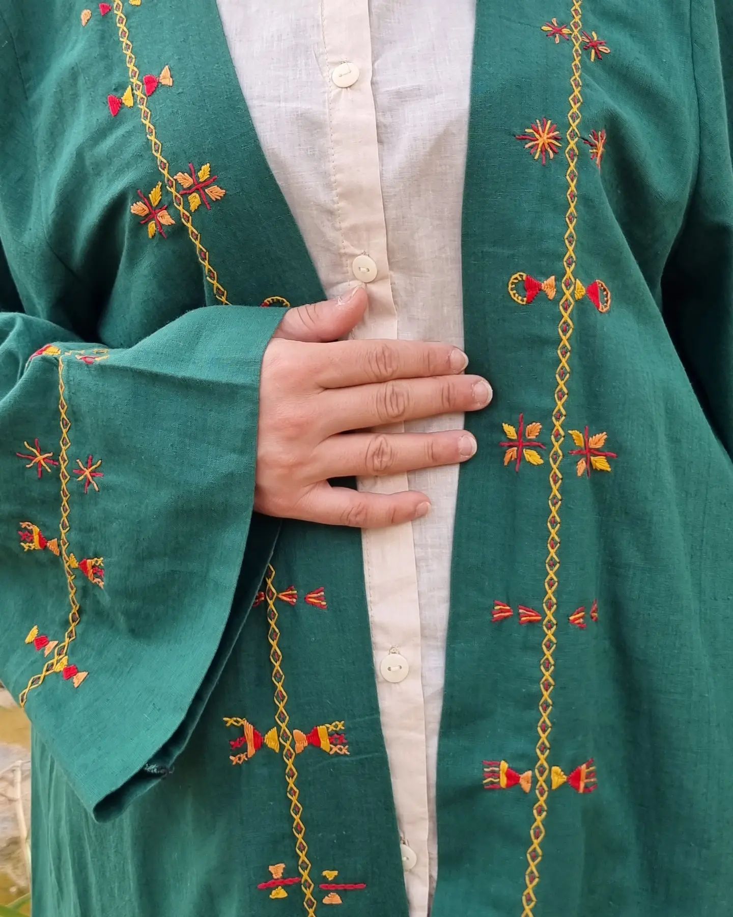 كما ألهمتها الملابس المطرزة الملونة لنساء الواحة لبدء مشروعها الخاص بالملابس، وبدأت في جمع المواد ودراسة التصميمات الخاصة بتراث المكان حتى تستطيع تطبيقه، وبالفعل نفذت فكرتها على أرض الواقع، وابتكرت تصميمات عصرية مناسبة للحياة اليومية.