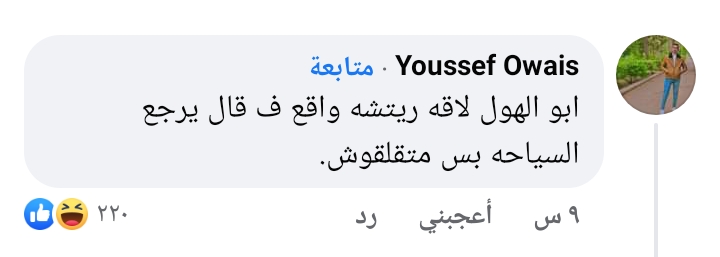 وتلقت الصورة العديد من التعليقات من قبِل الجمهور، وجاءت التعليقات كالتالي: أبو الهول لاقه ريتشه واقع قال يرجع السياحة بس متقلقوش.. في إيه ما أنا صاحي بقالي 7 ألف سنة جات على الدقيقتين دول.