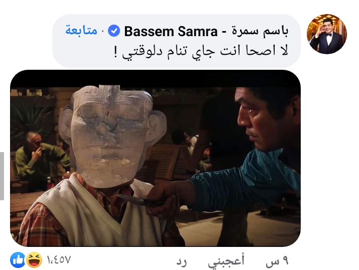 كما علق أيضا الفنان باسم سمره، على واقعة صورة أبو الهول مغمض العينين، قائلًا: أنت نمت يا زميلي.