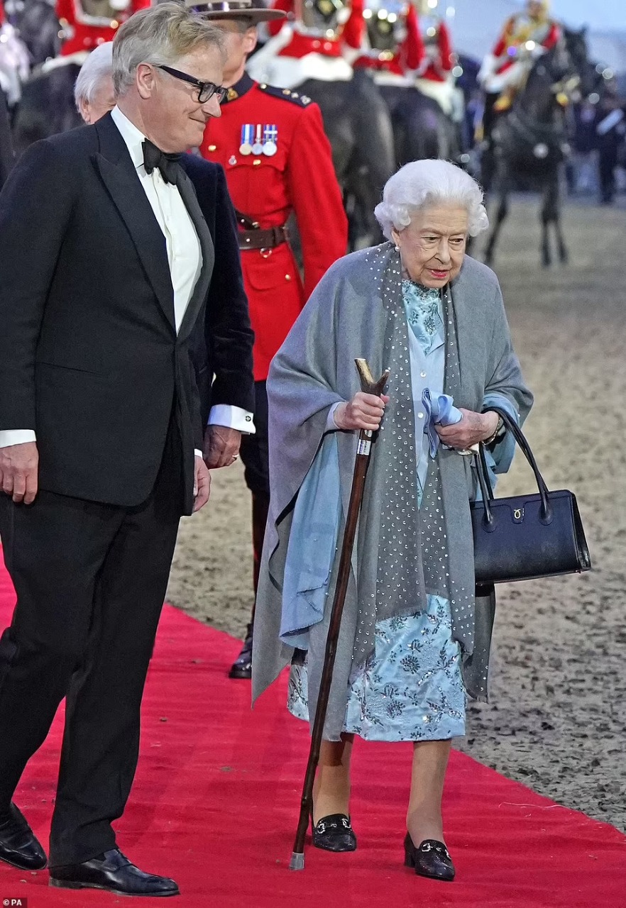 كما كان هناك تصفيق مستمر للملكة، عندما كانت تمشي إلى مقعدها في الصندوق الملكي، بجانب ابنها إيرل ويسيكس ممسكة بعصا المشي، والتي تؤكد معاناتها مع مشاكل في الحركة والمشي الفترة الأخيرة.
