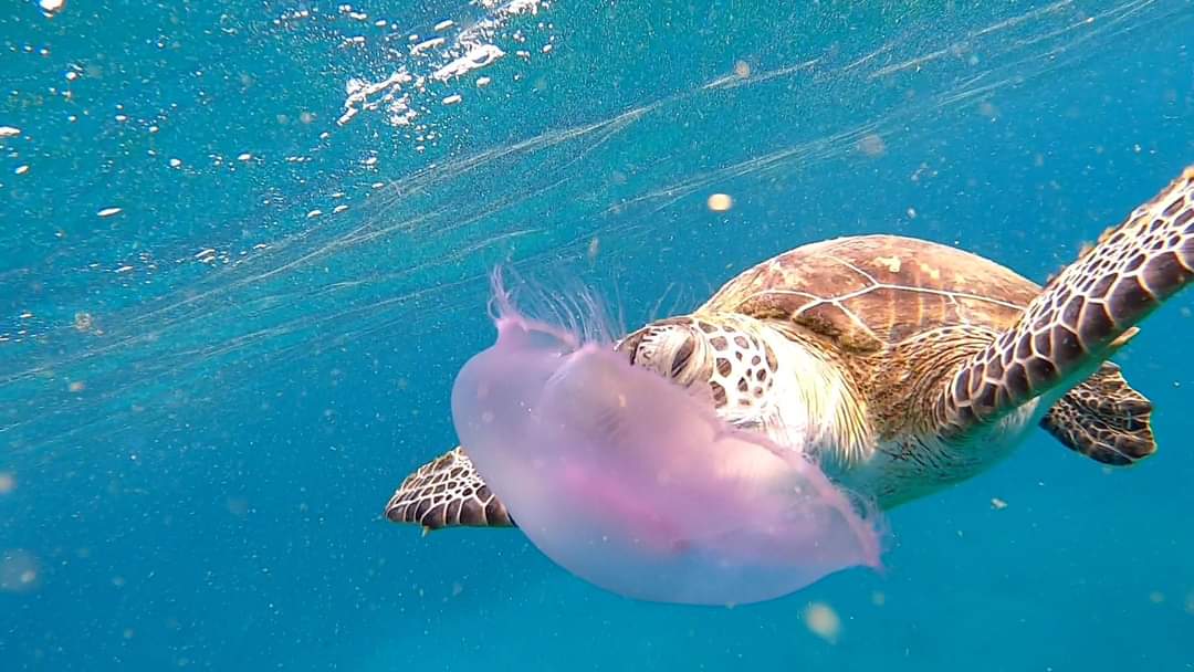 غواصون يوثقون لحظة تناول السلاحف بعض القناديل البحرية| صور وفيديو
