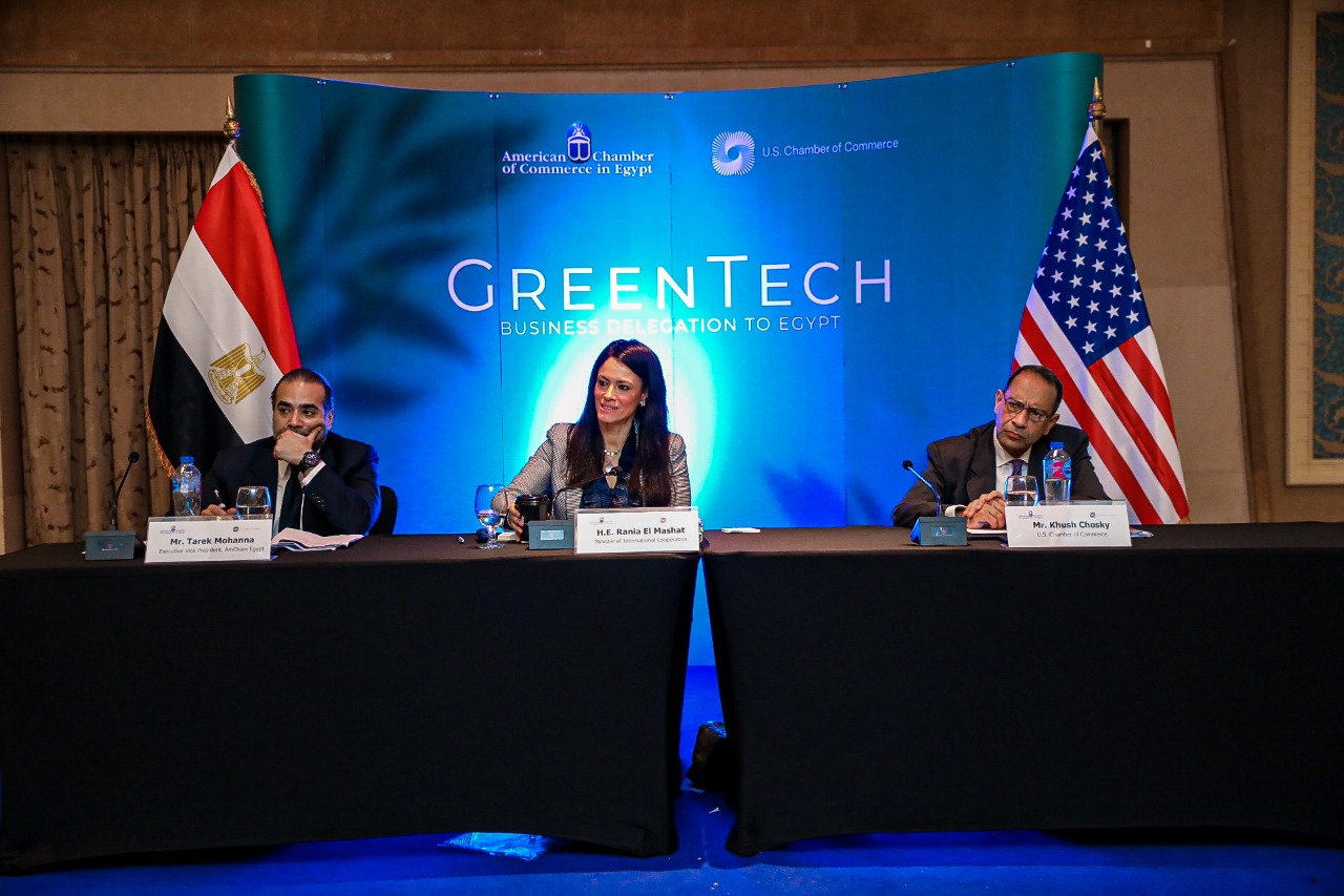 عقدت الدكتورة رانيا المشاط، وزيرة التعاون الدولي، لقاءً مع بعثة المستثمرين ومجتمع الأعمال الأمريكي، التي نظمتها غرفة التجارة الأمريكية، بالتعاون مع غرفة التجارة الأمريكية بالقاهرة، في إطار استعدادات مصر لاستضافة مؤتمر الأمم المتحدة للمناخ في دورته السابعة والعشرين COP27، واستكشاف فرص التعاون في مجال مواجهة التحديات المناخية والتحول الأخضر، وذلك تأكيدًا لاتزام مجتمع الأعمال الأمريكي تجاه دعم جهود التنمية في مصر، في إطار العلاقات المصرية الأمريكية المشتركة.