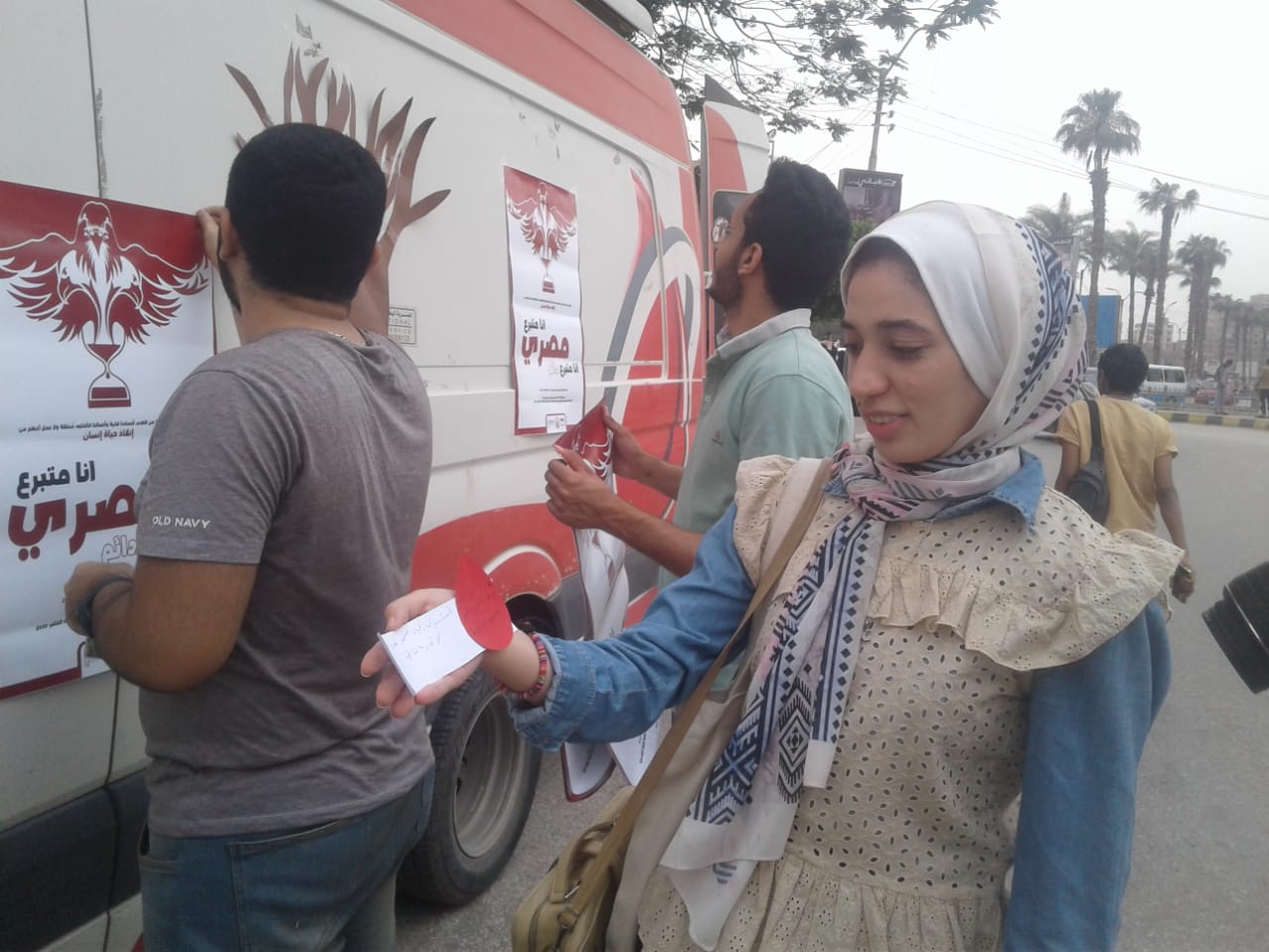 قالت الطالبة آيات حسن رئيس المكتب للاتحاد المصري لطلاب الصيدلة ببني سويف إن الحملة تتنقل من مكان لآخر كي تستهدف توعية الكثير من فئات المجتمع، وذلك لمحاولة تصحيح بعض المفاهيم المغلوطة حول بيع أكياس الدم.