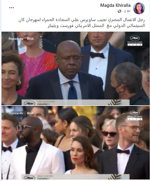 وظهر نجيب ساويرس مع النجم الأمريكي الحائز على الأوسكار فورست ويتكر على السجادة الحمراء بافتتاح مهرجان كان السينمائي.