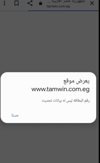 ثالثا: في حالة عدم طلب التحديث؛ ستظهر لك رسالة بـ رقم البطاقة ليس له بيانات تحديث.