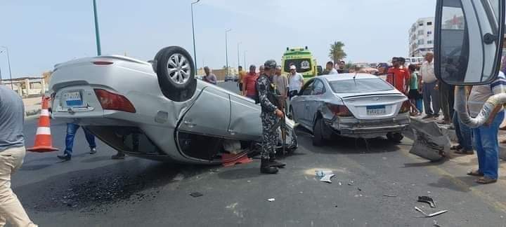 إصابة 3 أشخاص في انقلاب سيارتين بطريق مطار الغردقة