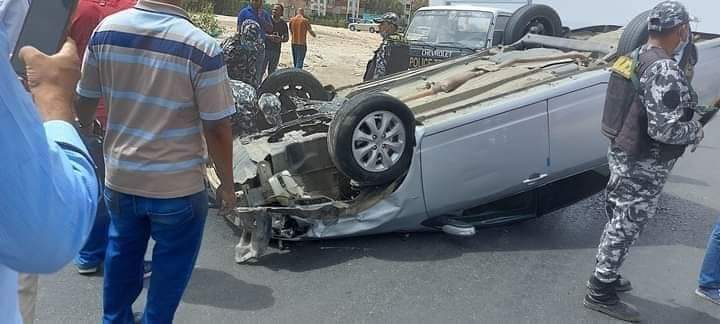 إخطار بوقوع حادث انقلاب سيارتين بطريق مطار الغردقة