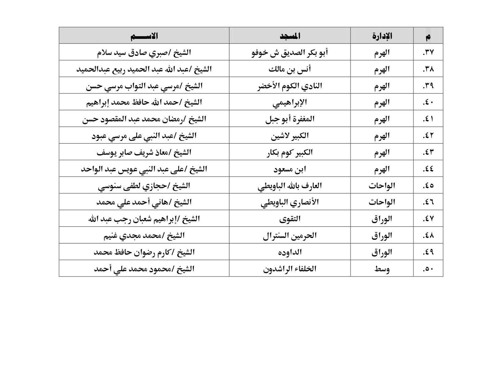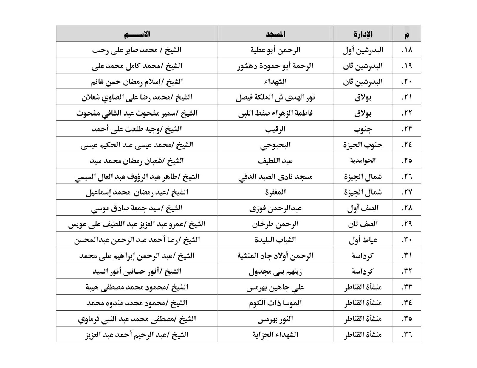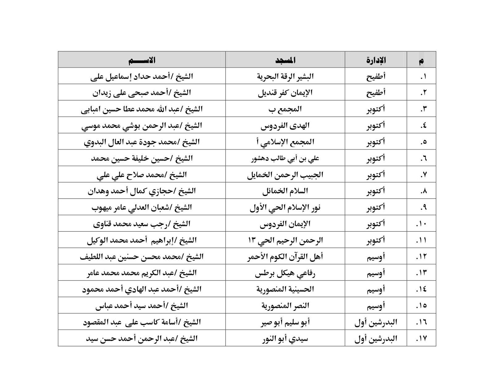 أولًا: اعتماد 30 خطيبًا جديدًا منهم 26 على بند التحسين، وهم: