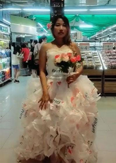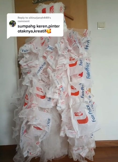 في واقعة طريفة بدولة سنغافورة، نشرت إحدى مروجات منصة الـ tiktok، مقطع لمدة 30 ثانية، تتجول في السوق مرتدية فستان مصنوع من الأكياس البلاستيك، مما أثار إندهاش المتابعين وكذلك الأشخاص المتواجدون بالسوق، وحاز المقطع على العديد من المشاهدات والاعجابات على المنصة، وبالرغم من تواجدها الضعيف على منصة التيكتوك إلا أن المقطع أعجب به الكثيرون.