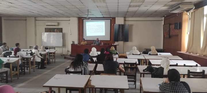 وألقى الندوة زكريا محي الدين محمد، رائد قوات مسلحة بالمعاش، ومدرب ثقافات الحياة، بقاعة التصميم بقسم الغزل والنسيج.