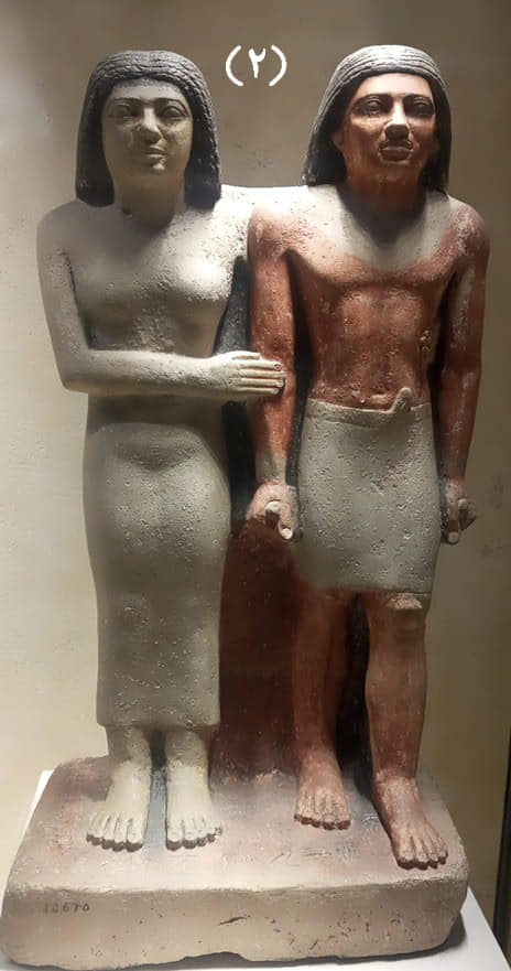كانت الأسرة في مصر القديمة عماد المجتمع في مصر القديمة، نرى تمثالا لأحد النبلاء بجوار زوجته، حيث كان تصوير الزوجة بصحبة زوجها من الأمور المعتادة في الفن المصري القديم؛ لأنه يتمنى أن تصحبه زوجته في العالم الآخر، مثلما كانت رفيقة له في الحياة الدنيوية، ويعود التمثال إلى الدولة القديمة الأسرة الخامسة، وصُنع التمثال من الحجر الجيري.