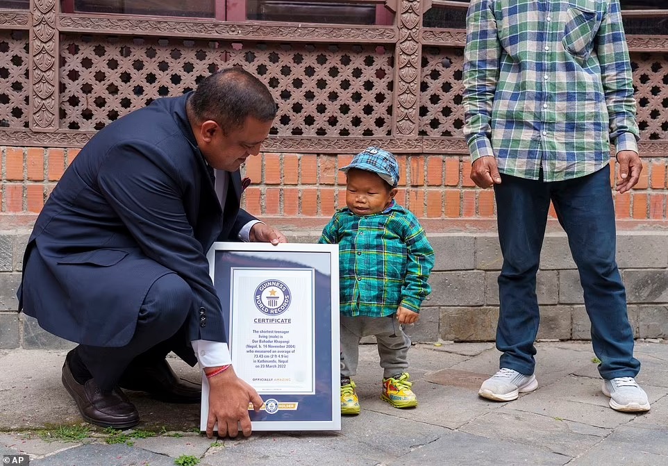 توج أقصر مراهق في العالم في كاتماندو بــ نيبال بجائزة موسوعة جينيس للأرقام القياسية، حيث يصل طوله 2 قدم و5 بوصات، وفقًا لـ صحيفة ديلي ميل البريطانية.