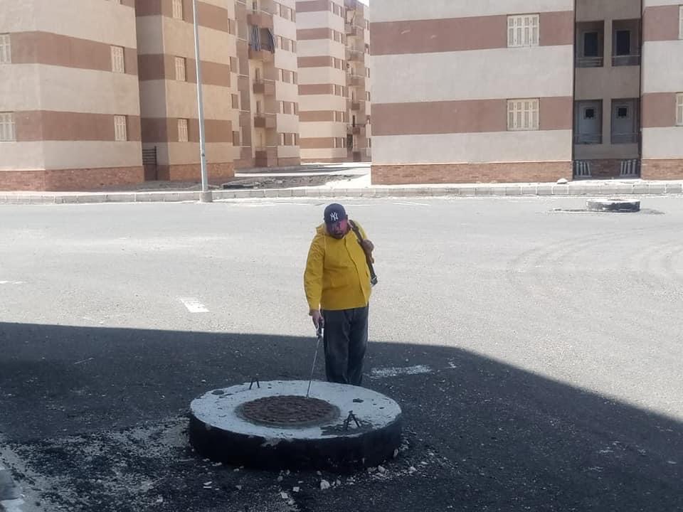 كما استمرت أيضا أعمال كسح مياه الصرف الصحي بالتقسيم وردم البرك والمستنقعات وأعمال رش المبيدات للمقاومة الأرضية للقضاء على الحشرات ببلاعات الصرف الصحي ومناطق تجميع القمامة بالمدينة حرصًا على المظهر الحضاري للمصيف.