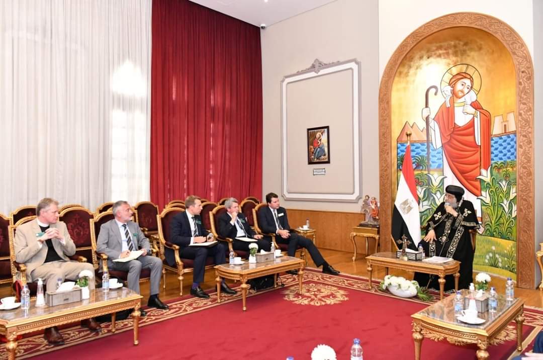 استقبل قداسة البابا تواضروس الثاني، بابا الإسكندرية وبطريرك الكرازة المرقسية، في المقر البابوي بالقاهرة، اليوم الأربعاء، وفدًا من الكلية الملكية لدراسات الدفاع البريطانية.