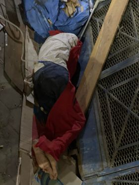 معلق قسطرة ونايم في الشارع.. قارئ يبلغ عن شاب مريض بدون مأوى في جسر السويس | صور