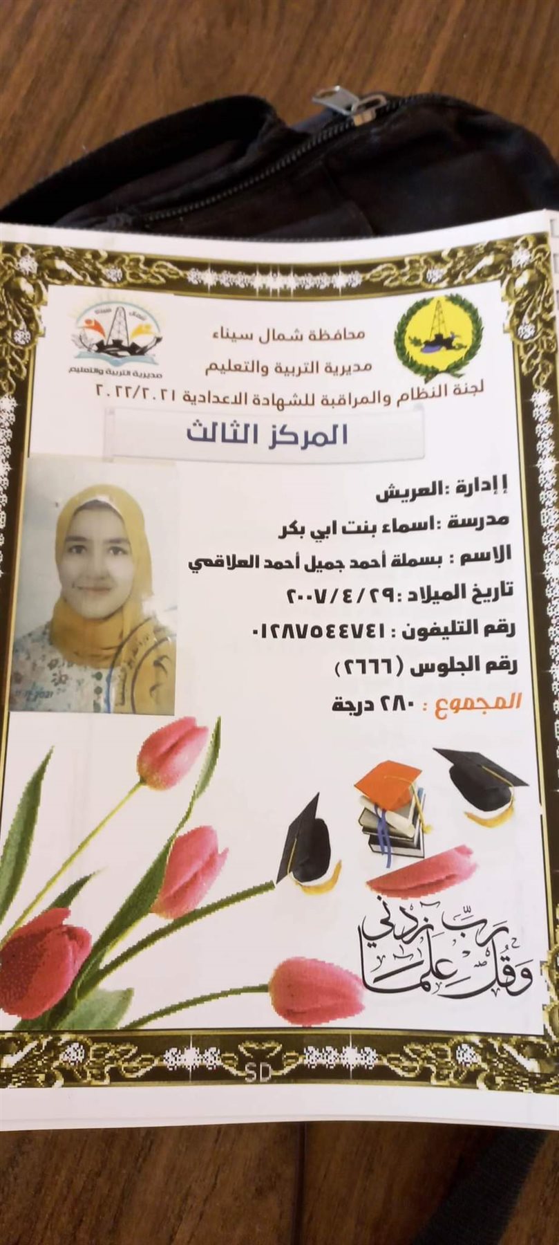 ننشر أسماء العشر الأوائل في الشهادة الإعدادية بشمال سيناء