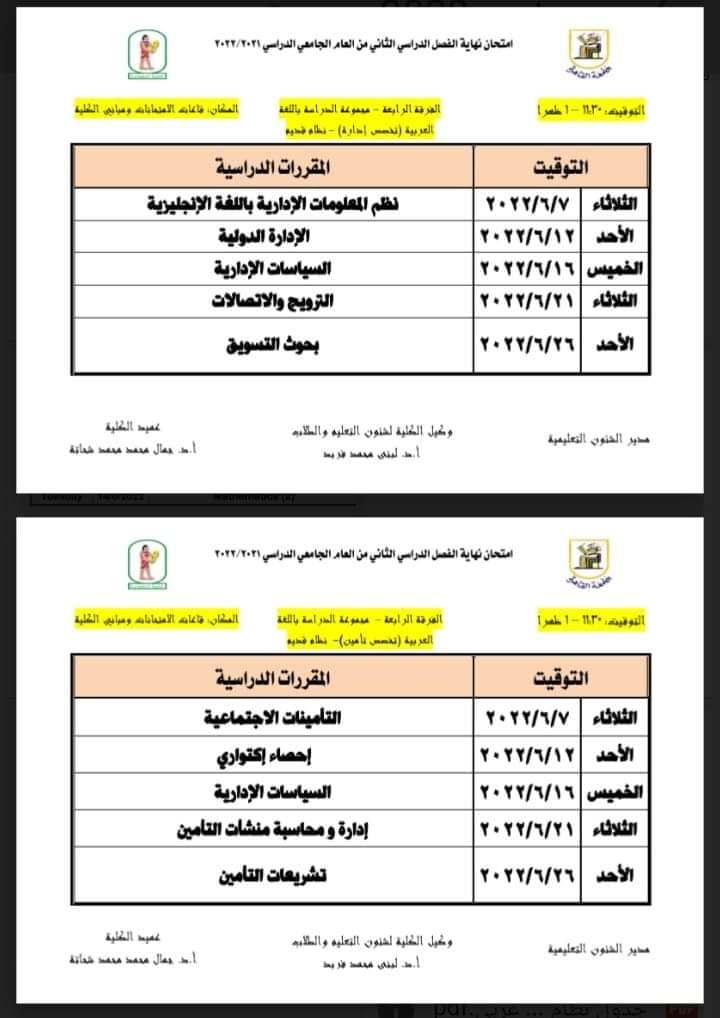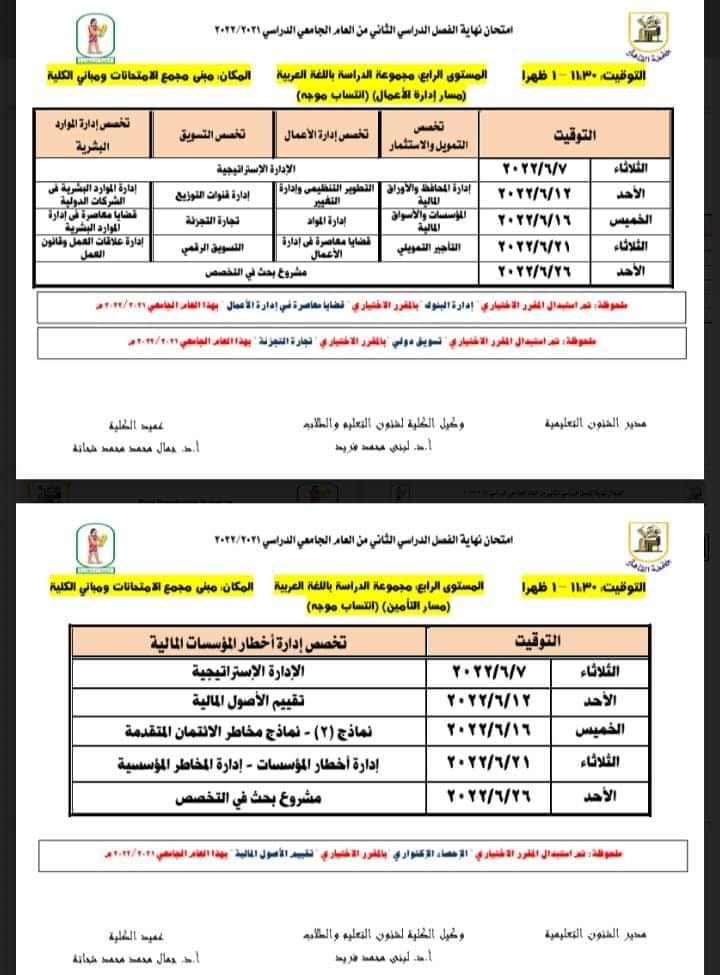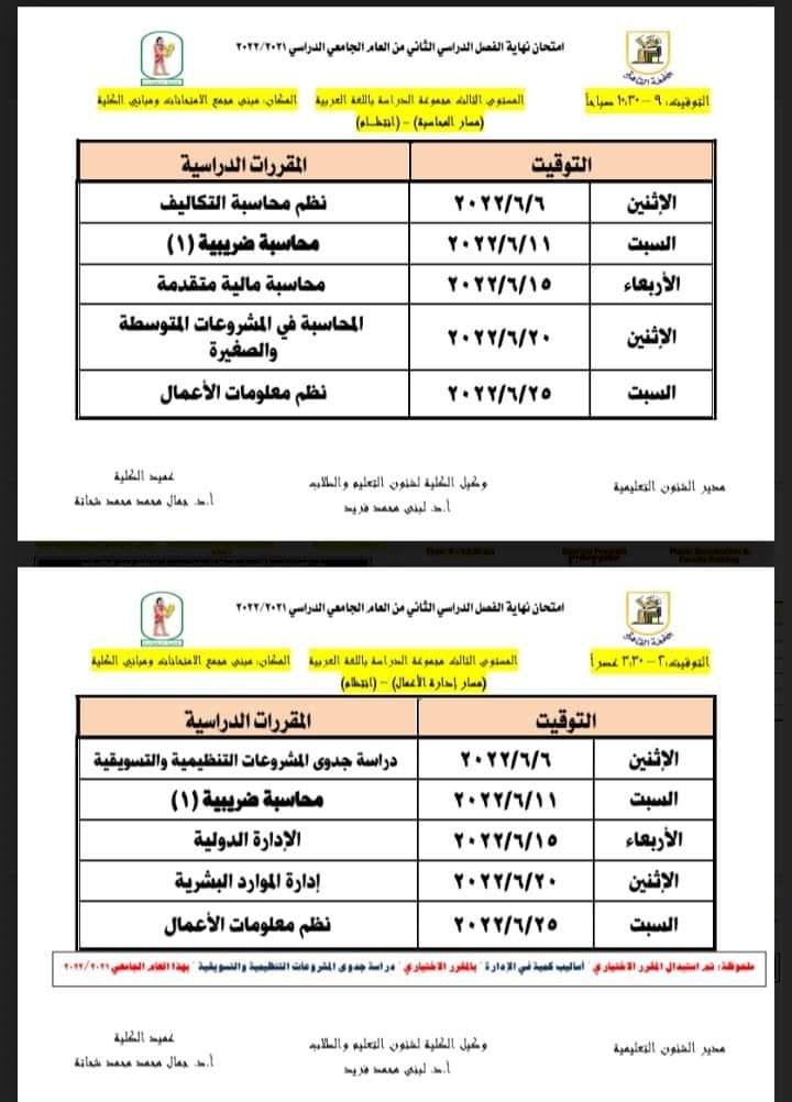 جدول امتحانات كلية تجارة جامعة القاهرة 2022