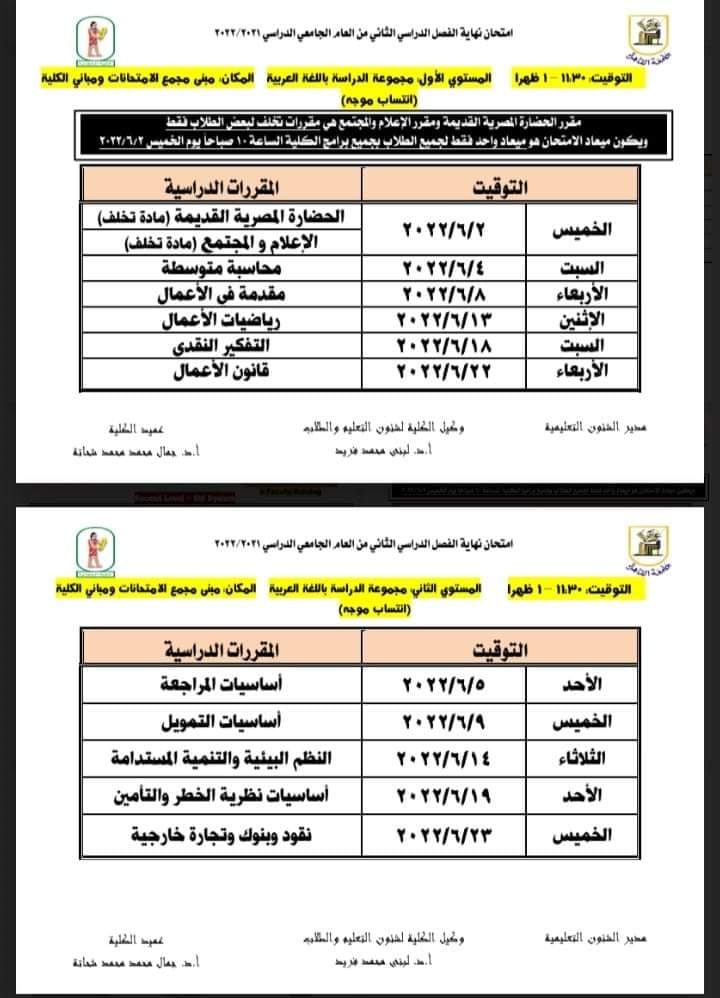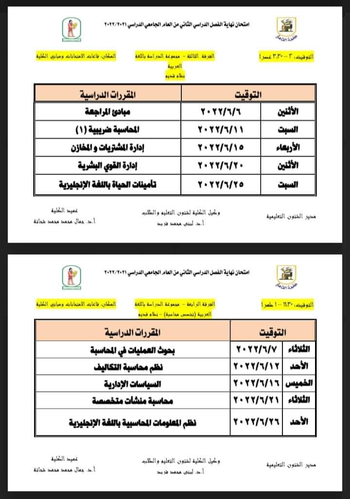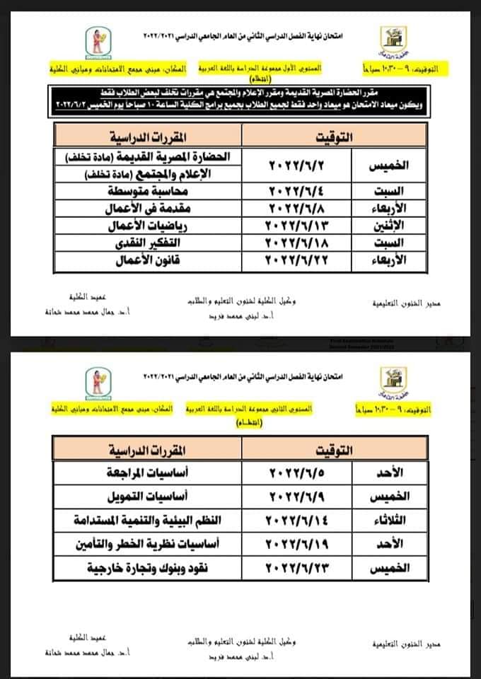 جدول امتحانات كلية تجارة جامعة القاهرة 2022 انتظام