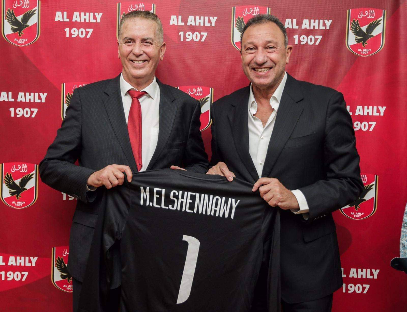 وأهدى محمود الخطيب، رئيس النادي الأهلي، عبد الحكيم سرار رئيس وفاق سطيف، قميص محمد الشناوي، حارس مرمى الفريق على هامش الزيارة.