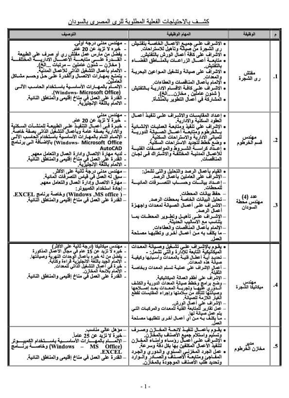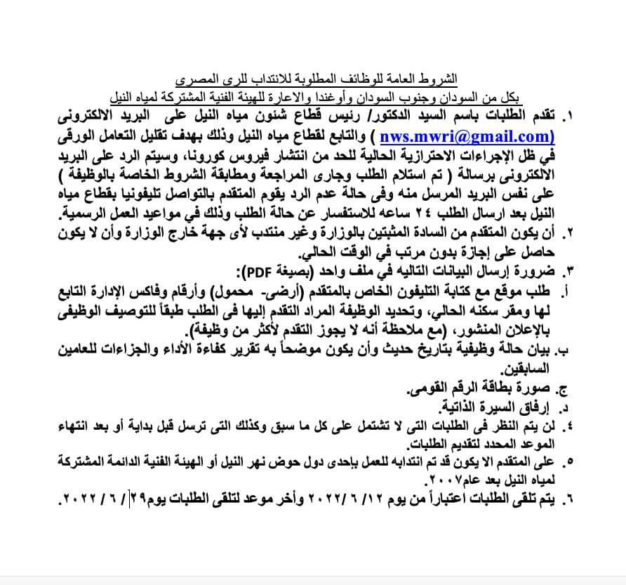 وظائف متاحة بالري المصري في السودان وأوغندا والهيئة المشتركة لمياه النيل | مستند