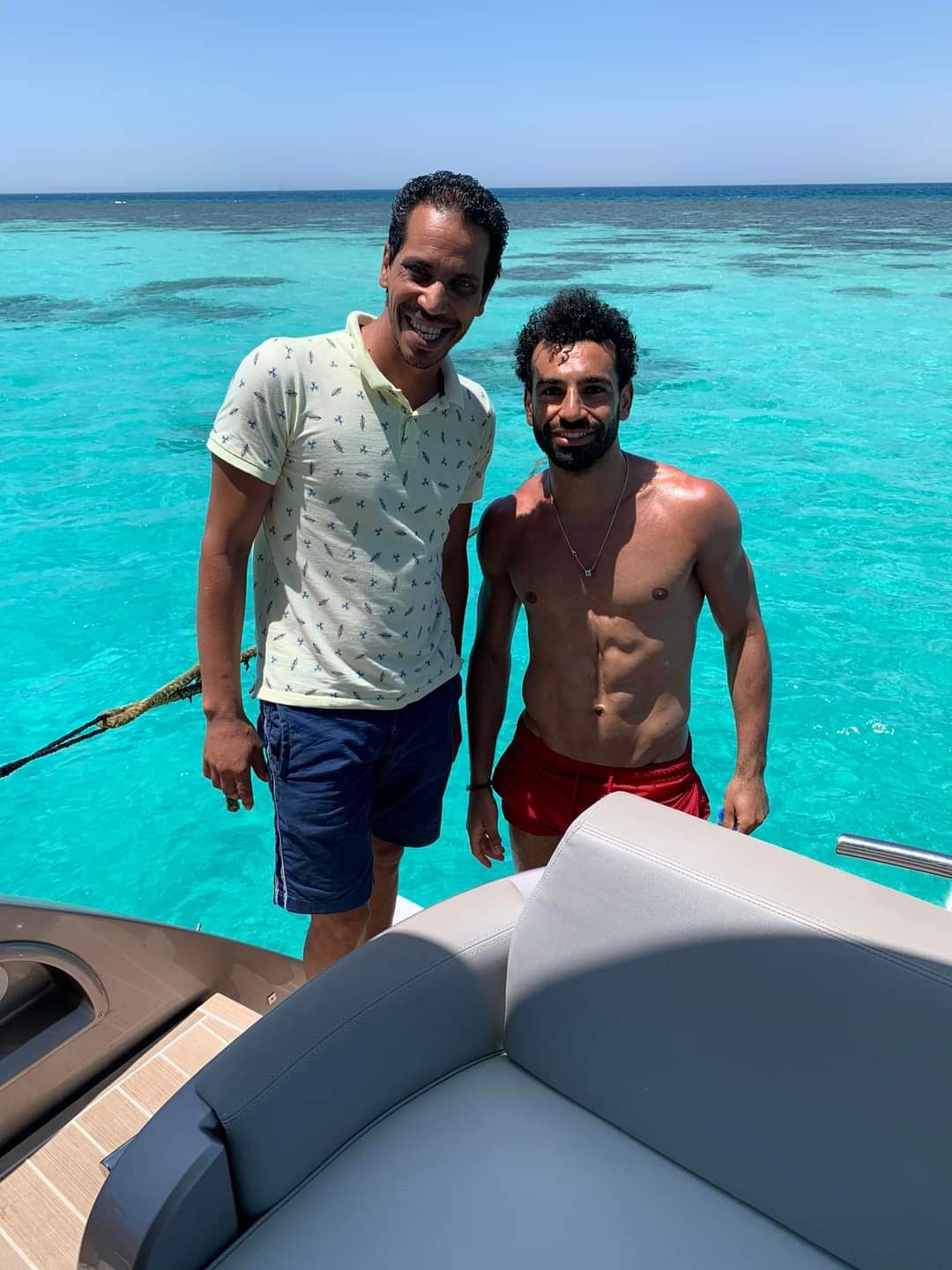 وظهر نجم نادى ليفربول الإنجليزي مع قائد اللنش السياحي، خلال رحلة بحرية بجزيرة بيوض، والتي تقع بالقرب من منتجع الجونة شمال مدينة الغردقة.