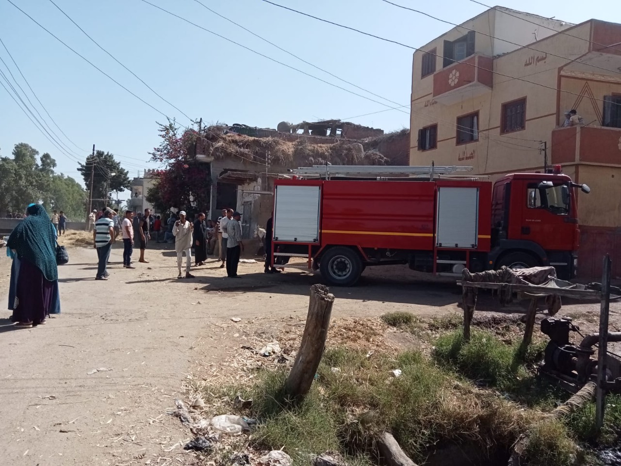 إصابة 5 أشخاص باختناق في حريق قش أعلى منزل بكفر الشيخ