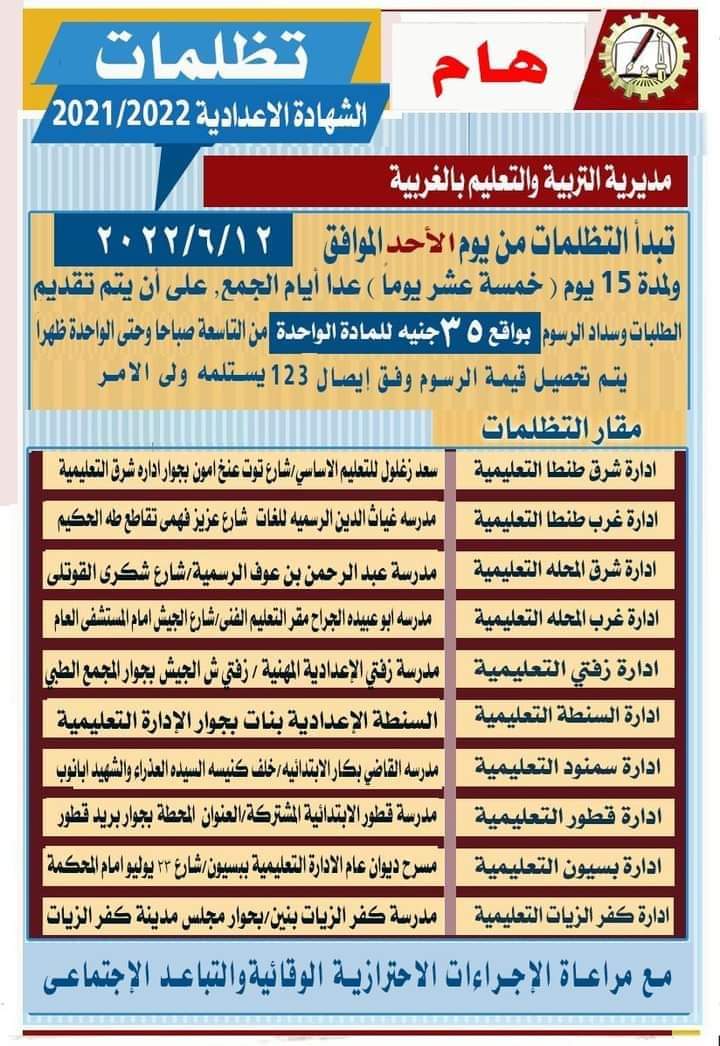 فتح باب تظلمات الشهادة الإعدادية بالغربية الأحد المقبل