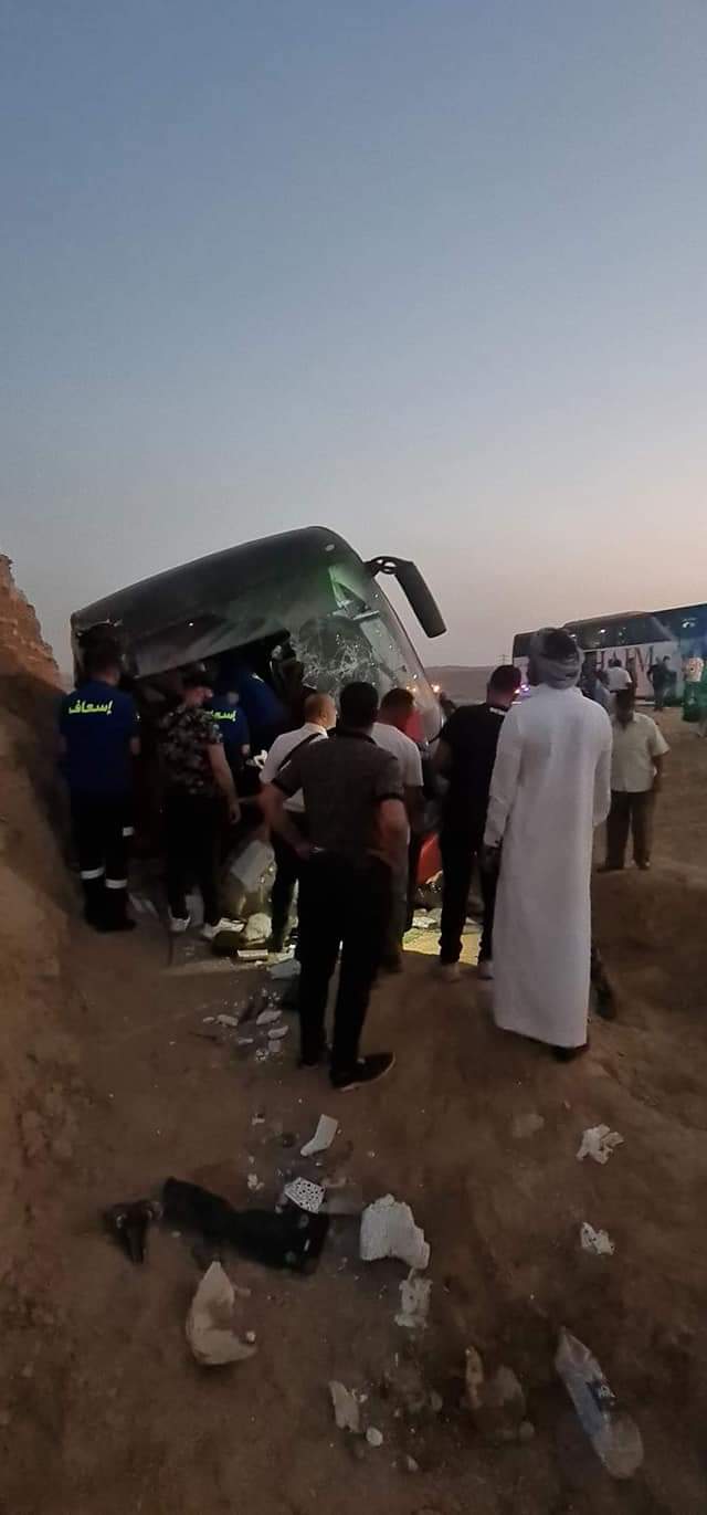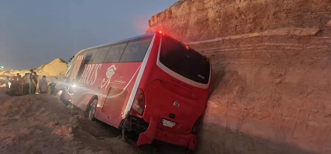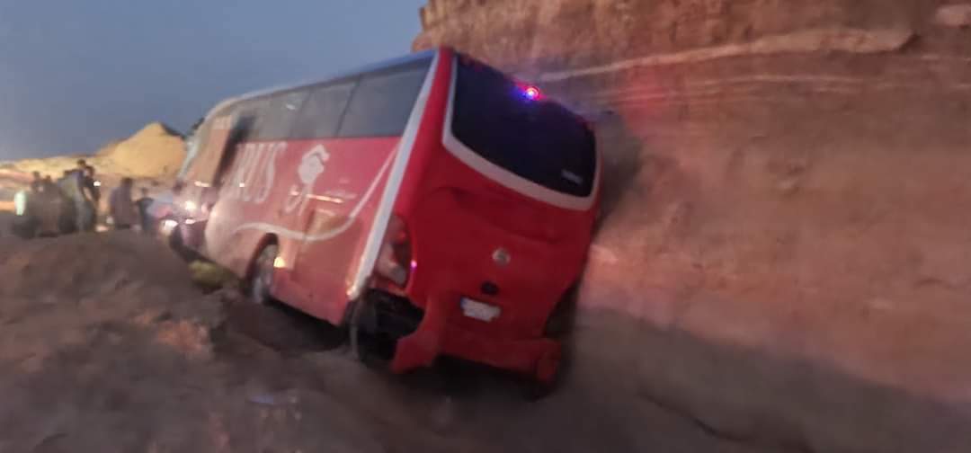 واكد شهود العيان أن الأتوبيس أثناء سيره على طريق أبو زنيمة الجديد انحرف عن مسار الطريق وانقلب على جانبه ليصدتم بأحد الجبال.