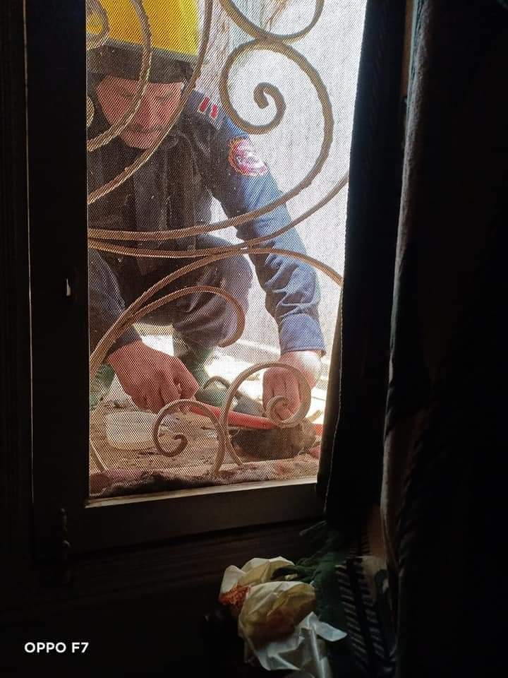 وأكد شهود العيان أنه فور تلقي الحماية المدنية البلاغ فوجئوا برجال الحماية المدنية وقوات الإنقاذ البري في أقل من 10 دقائق في محل البلاغ، وصعدوا إلى مكان القطة وتبين أنها معلقة بين الطابق الرابع والخامس، وقصوا الحديد المانع من خروجها، والاطمئنان على الحالة الصحية لها، ثم قاموا بالدفع بإنزالها.