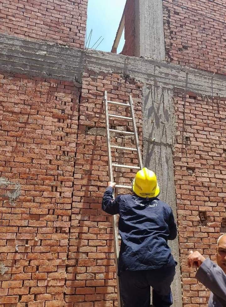 وكان الأهالي يمدونها بالماء والطعام، وتم إنزلها بمعرفة رجال الإنقاذ البري في 10 دقائق، ووضعها في مكان آمن وتقديم طعام لها.