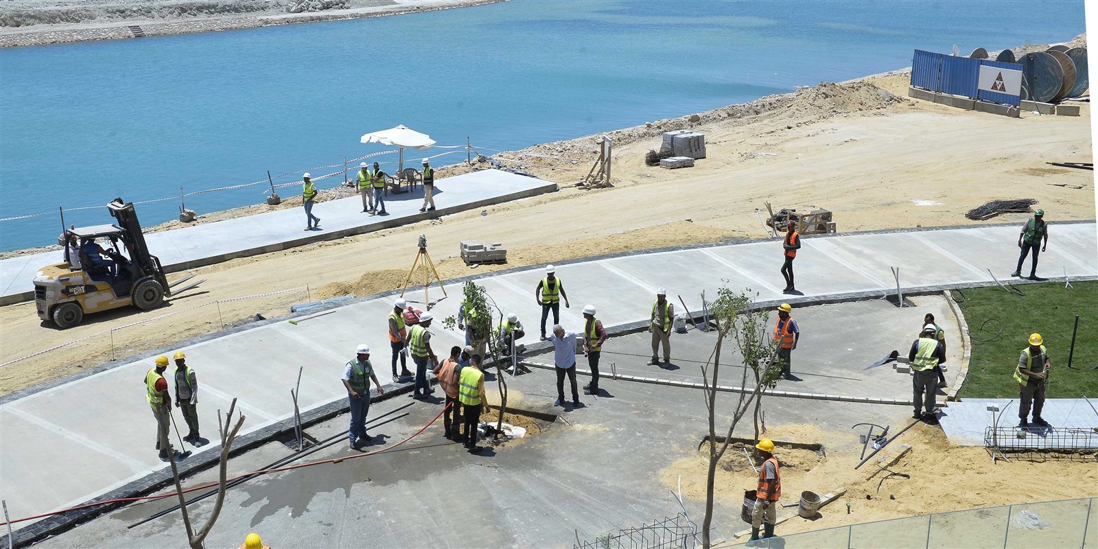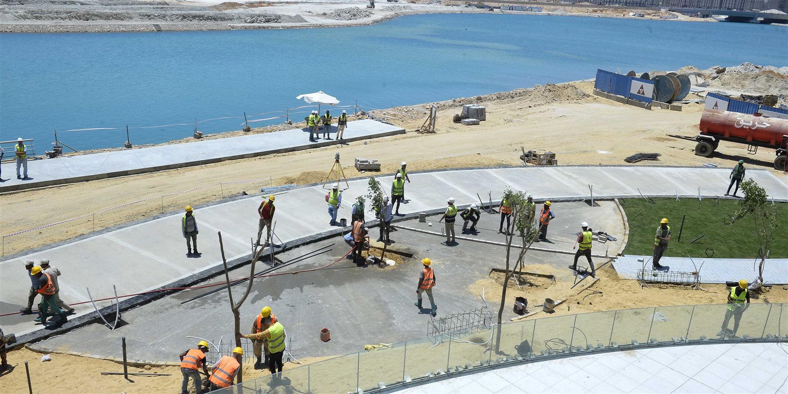 كما تفقد رئيس الوزراء ومرافقوه أعمال الجزيرة الوسطى الممتدة من طريق A4 وحتى طريق C3، والتي تشهد حاليا استكمال أعمال التنسيق بها، وتشمل أعمال الزراعة والإنترلوك، وتخطيط الطريق وأعمال الإنارة.