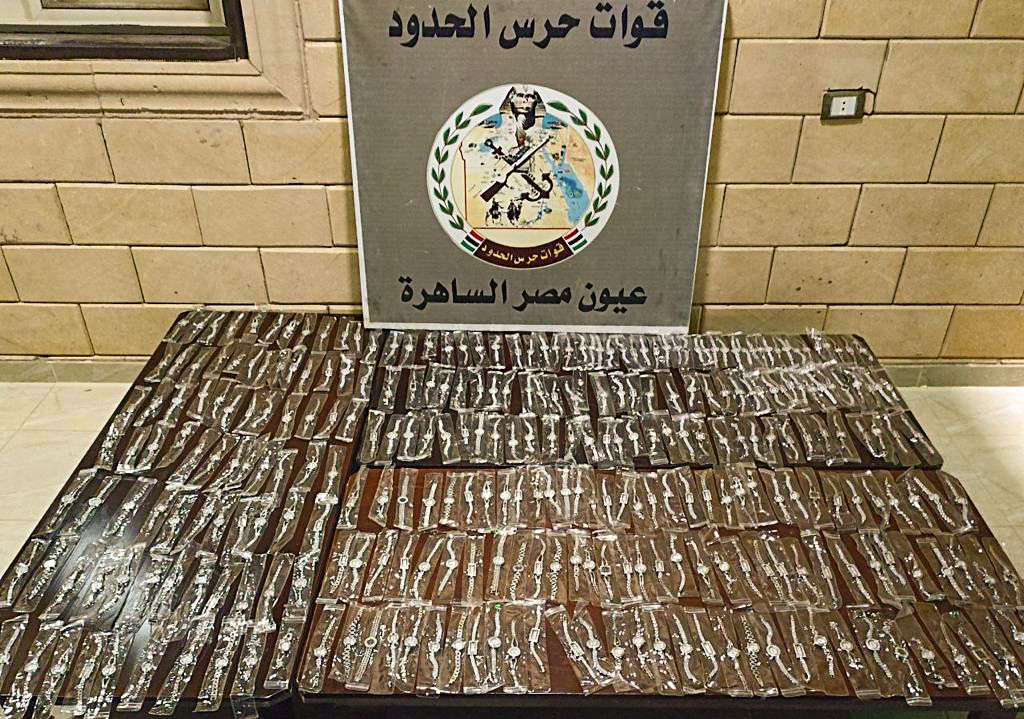 كما تمكنت عناصر حرس الحدود أثناء عمليات التفتيش والتأمين الدورية للسيارات والمركبات بالأنفاق والمعابر الحدودية من ضبط لودر مخبأ بداخله 1.5 طن من جوهر الحشيش المخدر، و20 لفافة من مخدر الهيدرو بإجمالي 8 كيلو جرامات، وعلى الاتجاه الاستراتيجي الغربي تم ضبط عربة بها 800 ألف قرص مخدر و2 بندقية مختلفة الأعيرة و21 لفافة بها مشغولات فضية بإجمالي 43.5 كيلو جرام.
