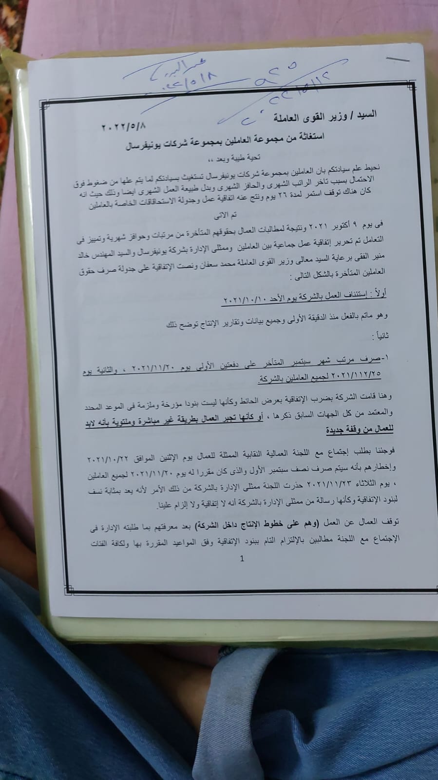 وأكد العامل الذي يعمل في شركة يونيفرسال منذ عام 2004، أنهم قدموا العديد من الشكاوي داخل وزارة القوى العاملة، رادفًا: الشكاوى نايمة في الدرج، ومحدش جاب لنا حقوقنا.