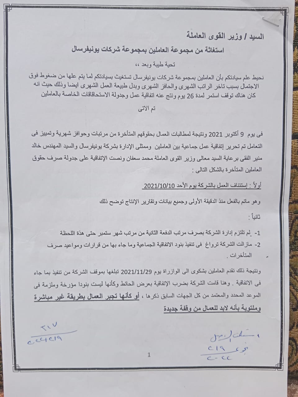 عمال يونيفرسال: جالنا عاهات مستديمة وعمرنا راح.. والقوى العاملة لم ترد
