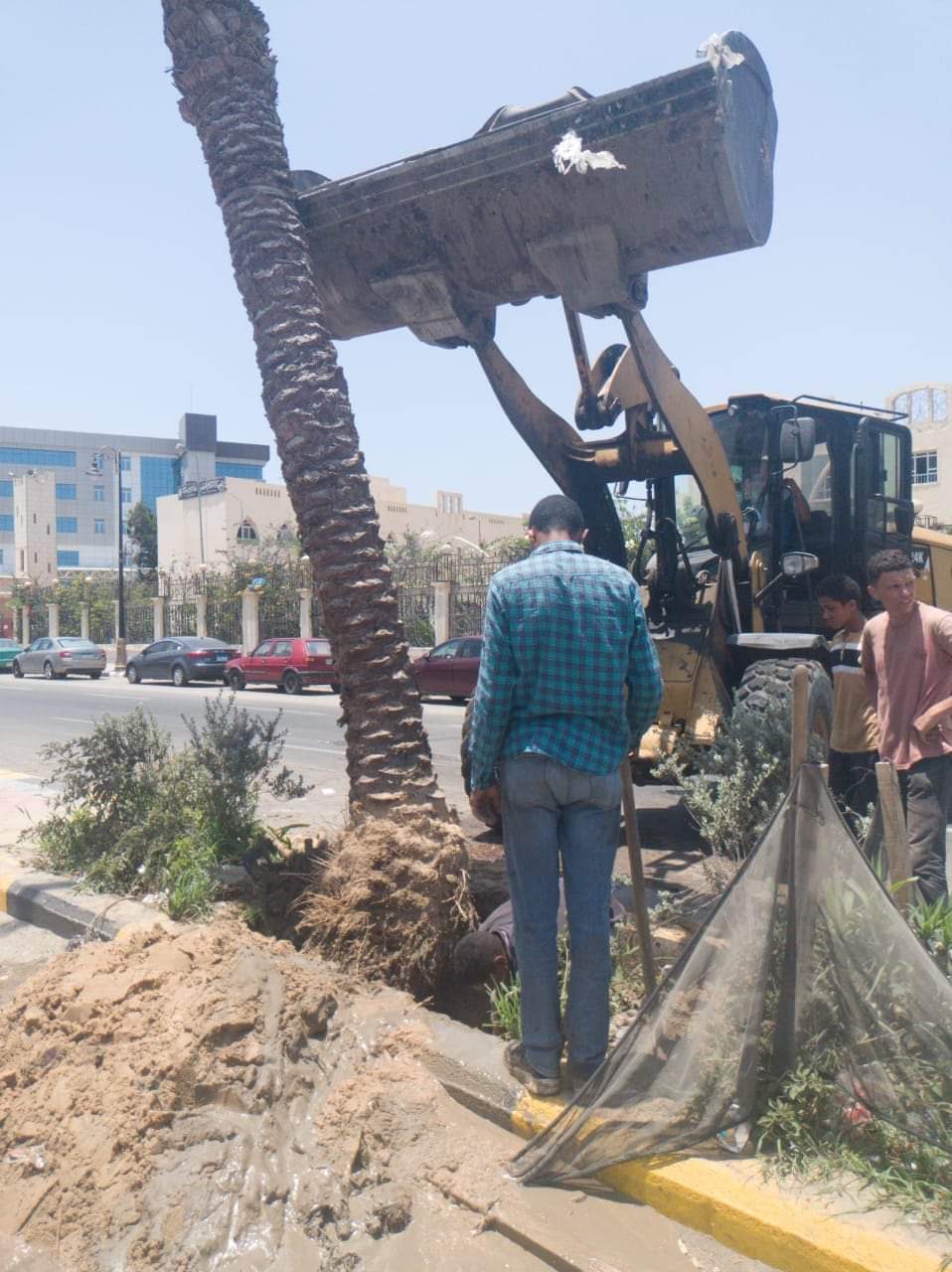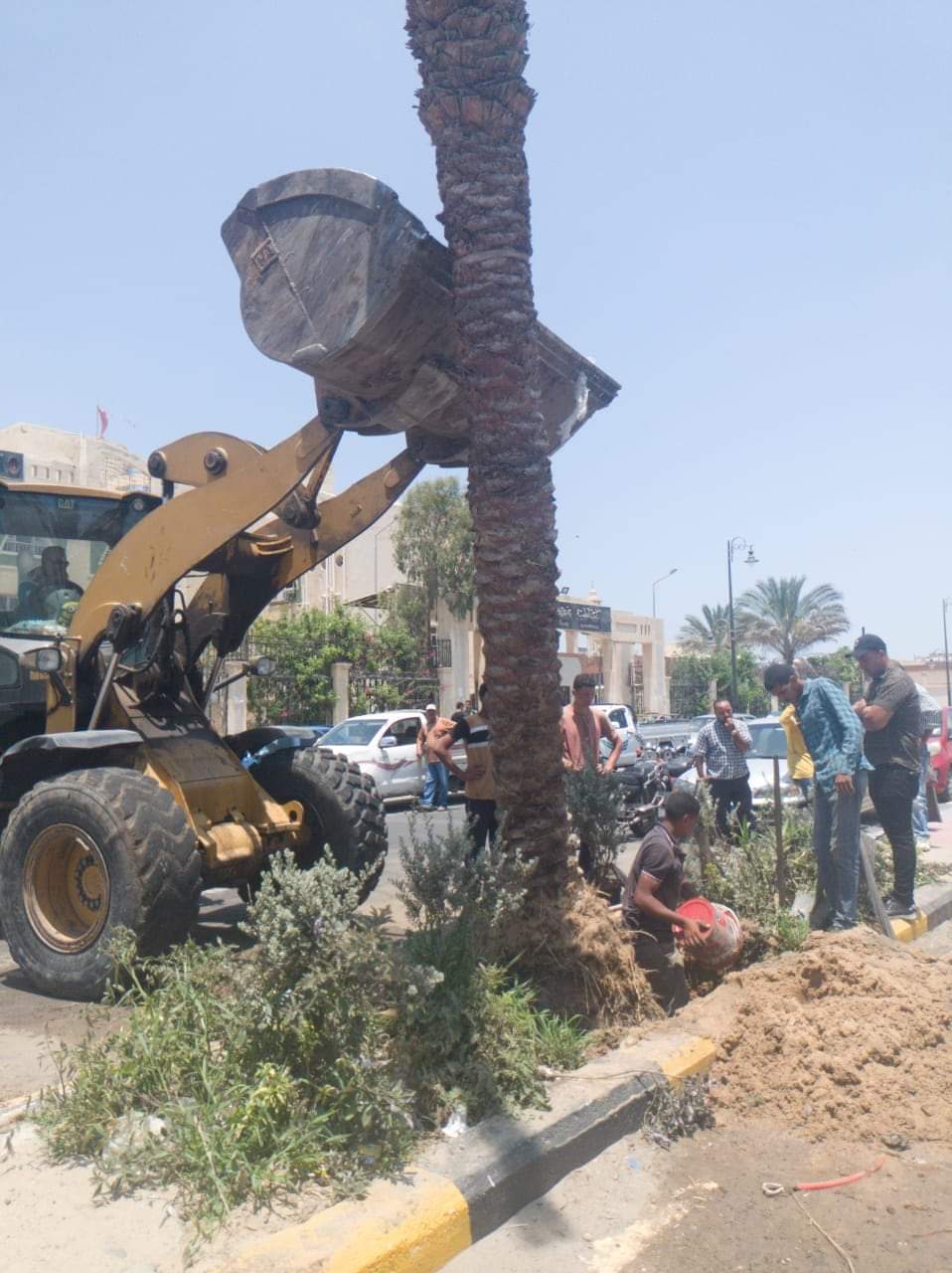 قامت المعدات التابعة للحى بإعادة رفع النخلة من نهر الطريق، وإعادة زرعها من جديد داخل الجزيرة الوسطى للشارع بعد القيام بأعمال الحفر بمكان زراعتها، وحرص العمال والمشرفين على تعميق مكان وضع النخلة حتى لا تتعرض للسقوط من جديد.