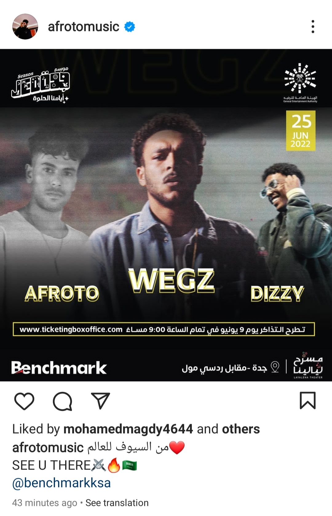 ويجز وعفروتو في حفل جديد بموسم جدة السعودي يوم 25 يونيو