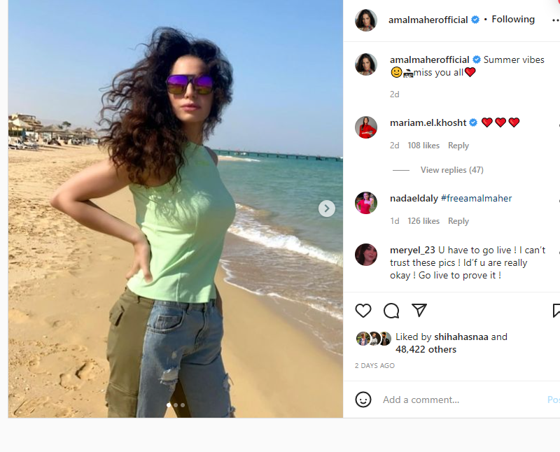 وكانت آمال ماهر، شاركت متابعيها صورة جديدة لها، خلال الأيام الماضية، عبر حسابها الشخصي بموقع انستجرام، وعلقت قائلة: أجواء الصيف وحشتوني.