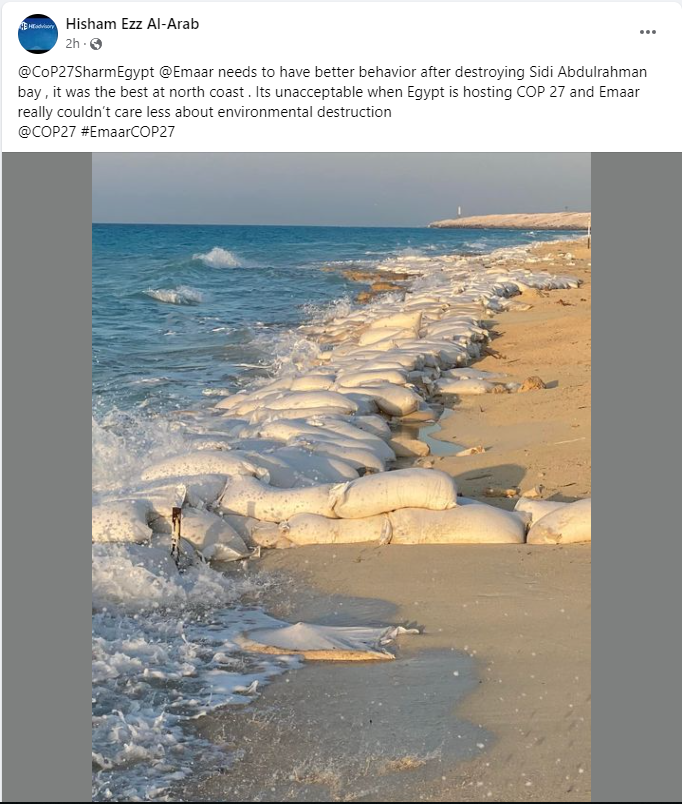 وتابع هشام عز العرب: ليس من المقبول أن تستضيف مصر قمة المناخ COP27، ولا تهتم شركة إعمار بتدمير البيئة.